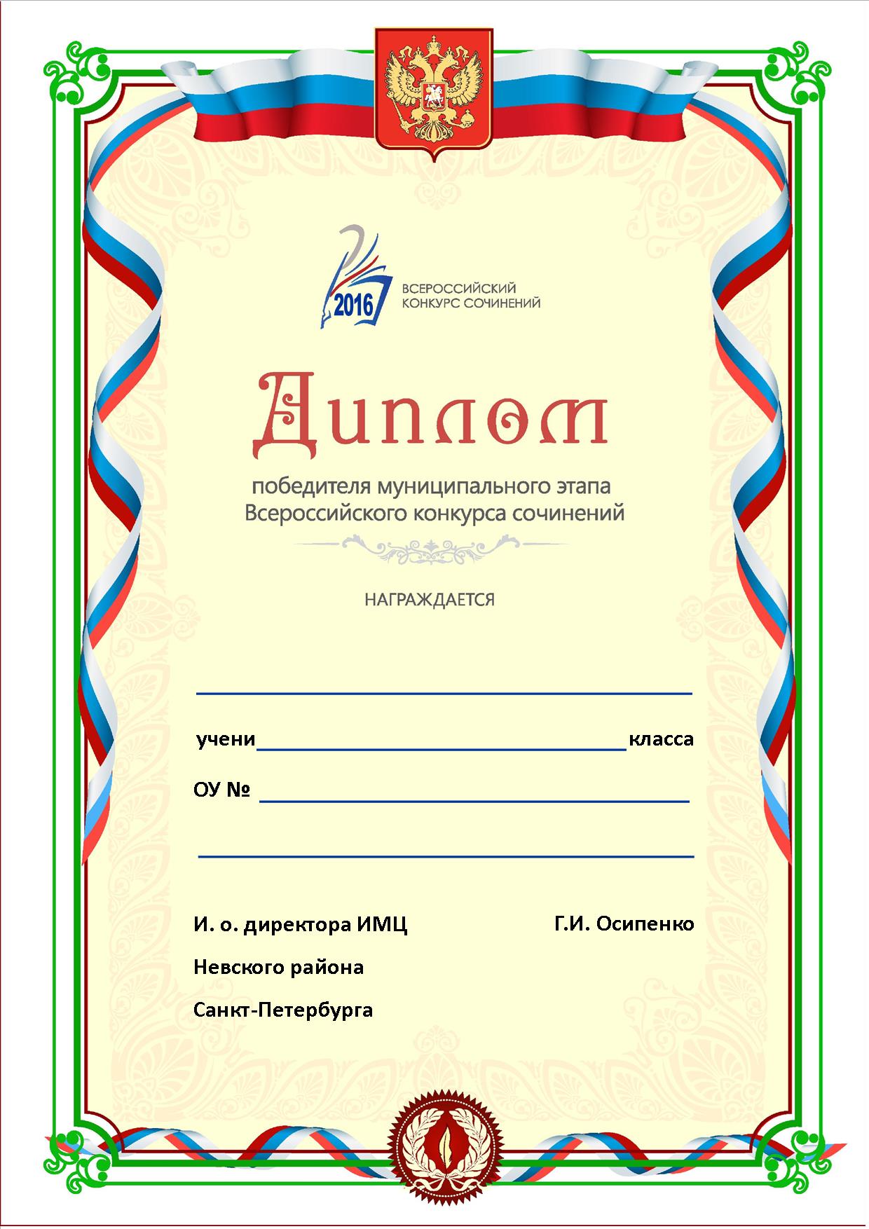 Дипломы школьного и районного этапов Всероссийского конкурса сочинений
