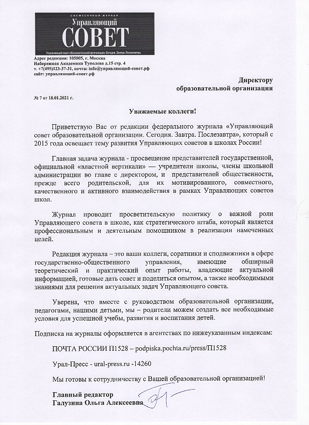 В целях развития информационного обеспечения государственно-общественного управления Департамент государственной политики и управления в сфере общего образования Минпросвещения России информирует об издании журнала «Управляющий совет образовательной организации. Сегодня. Завтра. Послезавтра».