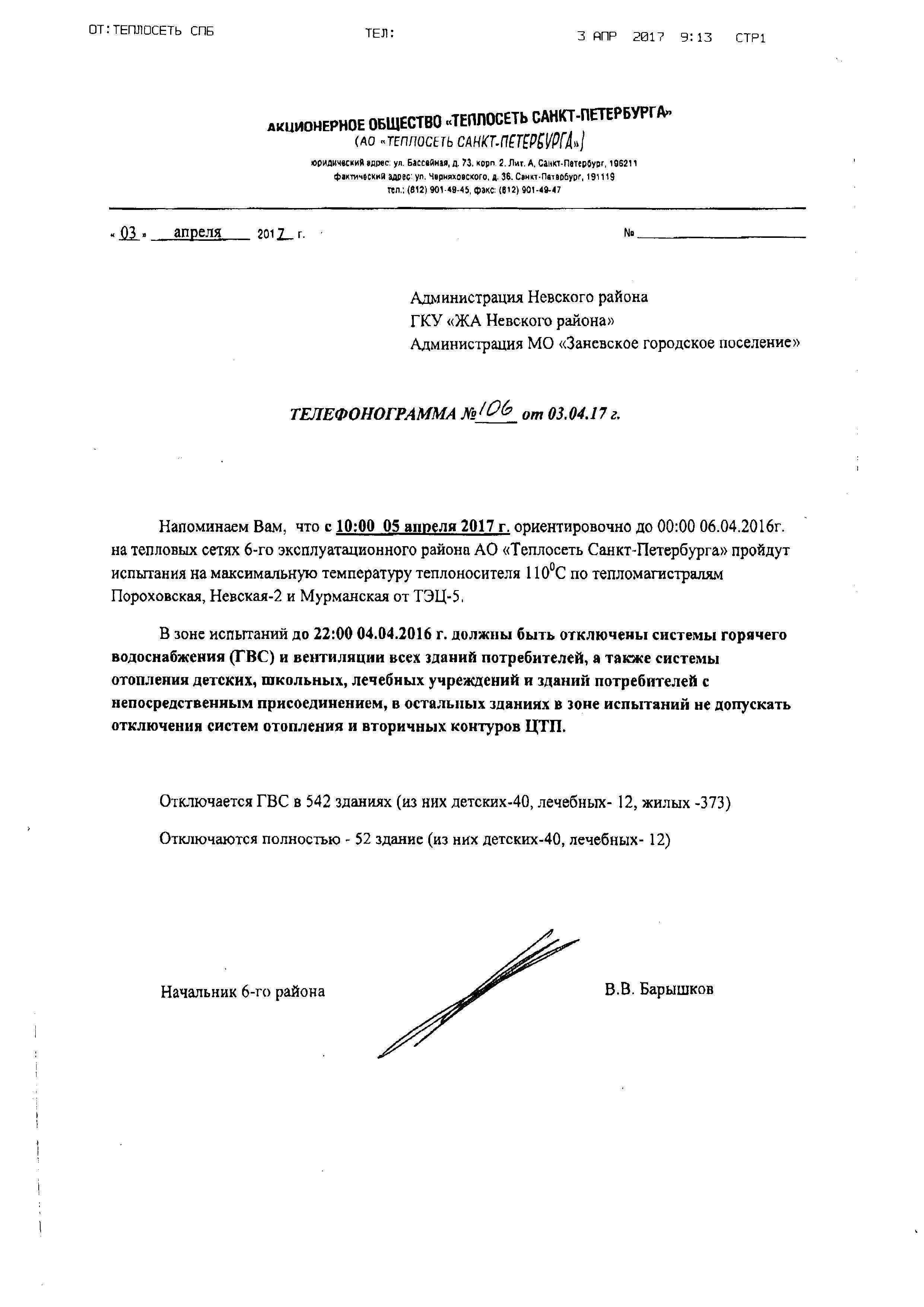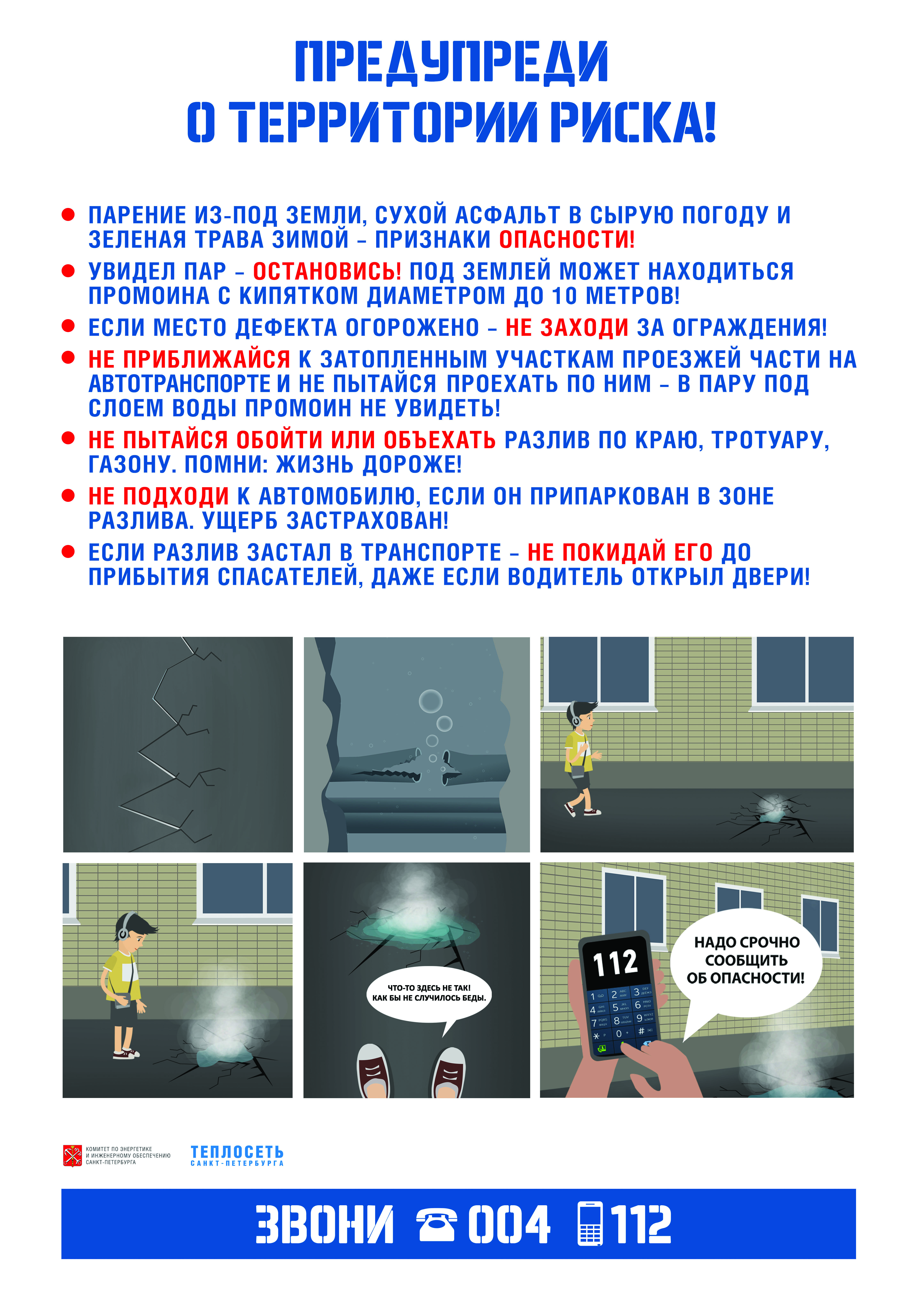 Прошу учреждения, непосредственно попадающие в зону испытаний, принять соответствующие меры и меры безопасности. Провести соответствующие инструктажи. Обеспечить наблюдение за территорией и незамедлительность доклада в АО «Теплосеть Санкт-Петербурга» в случае аварии. Детей на прогулку не выводить.